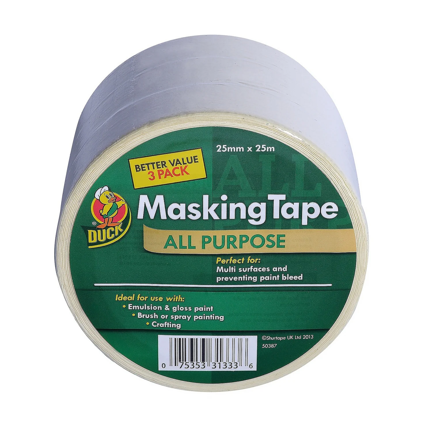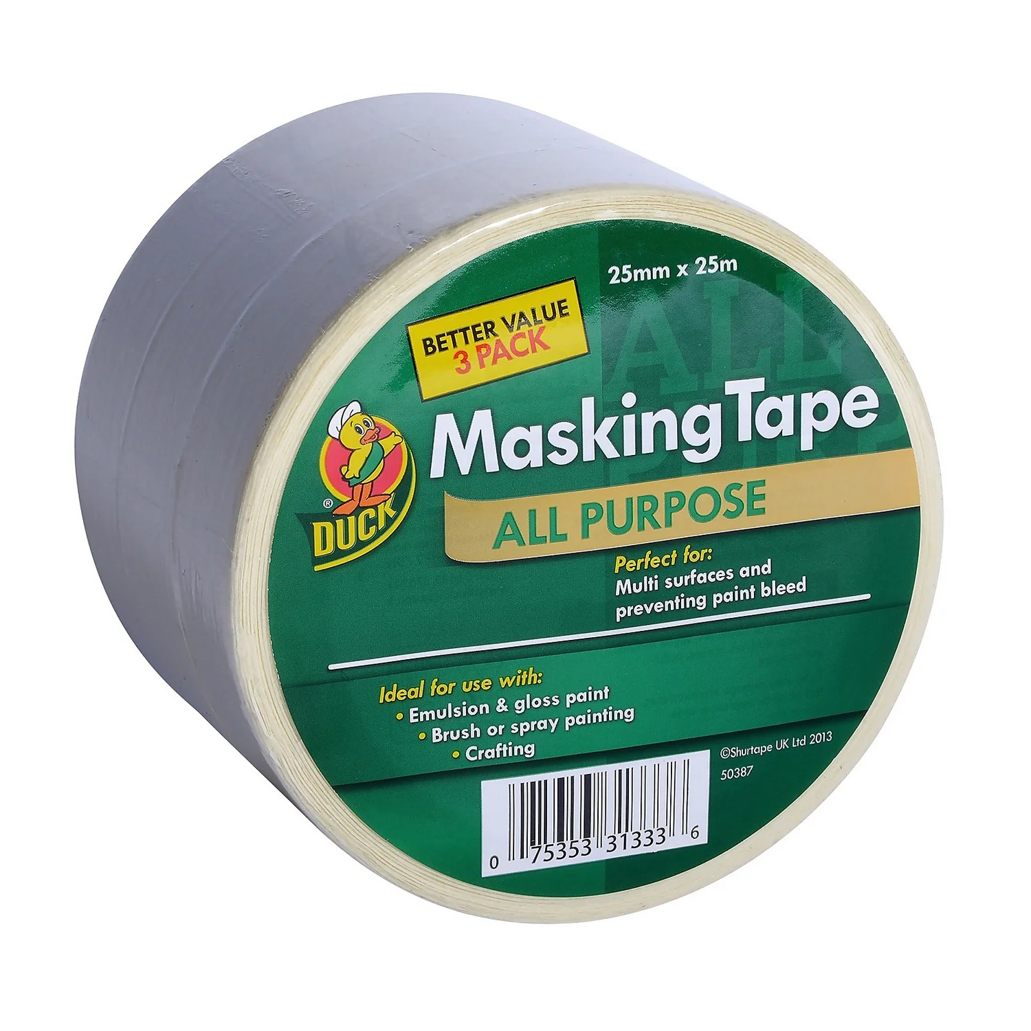 Duck all Purpose masking tape is perfect for use on interior multi-surfaces and for preventing paint bleed It is for use with emulsion or gloss paint, brush or spray painting and crafting Remove masking tape as soon as it has dried, do not wait until the paint has fully dried