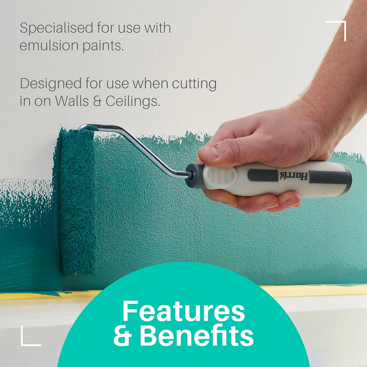 - Splatter control roller fabric hangs on to paint droplets for less mess.