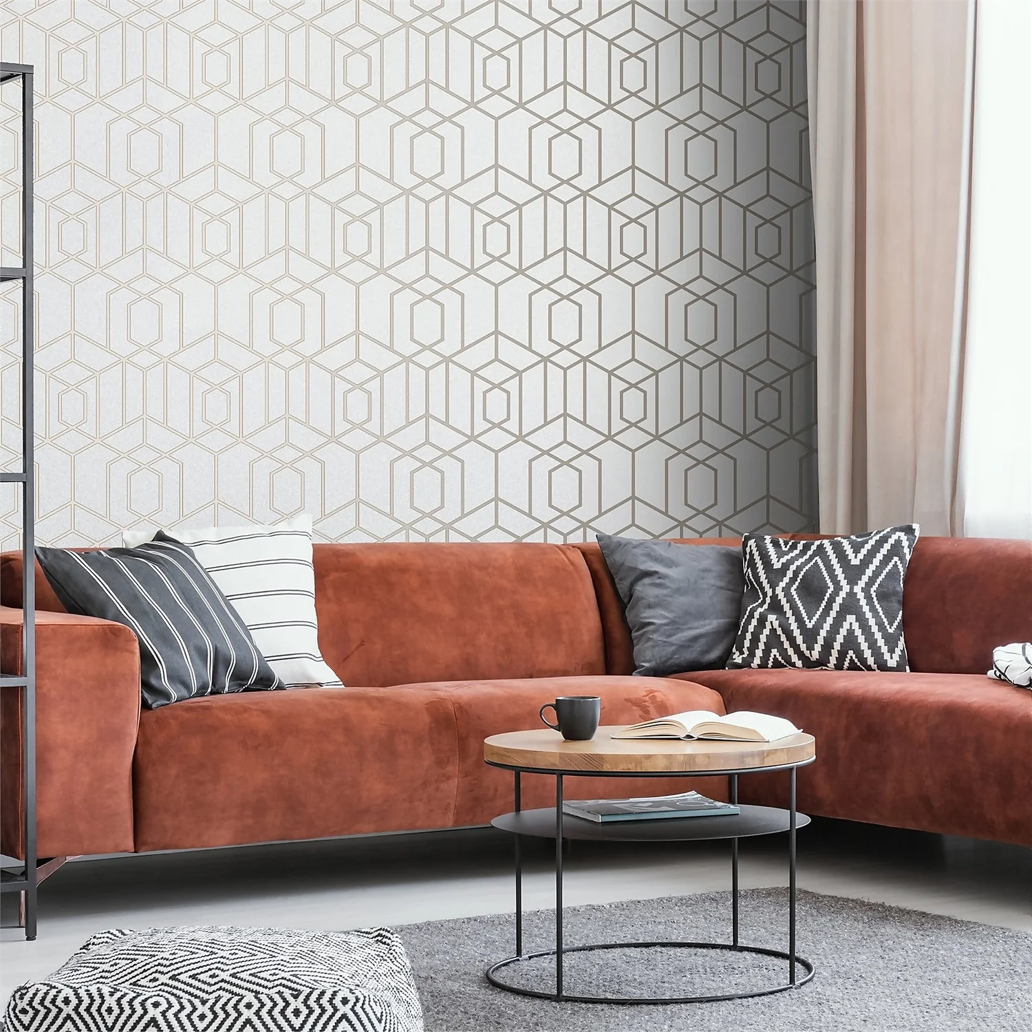 - Geometric,metallic finish giving your walls a fashionable finish