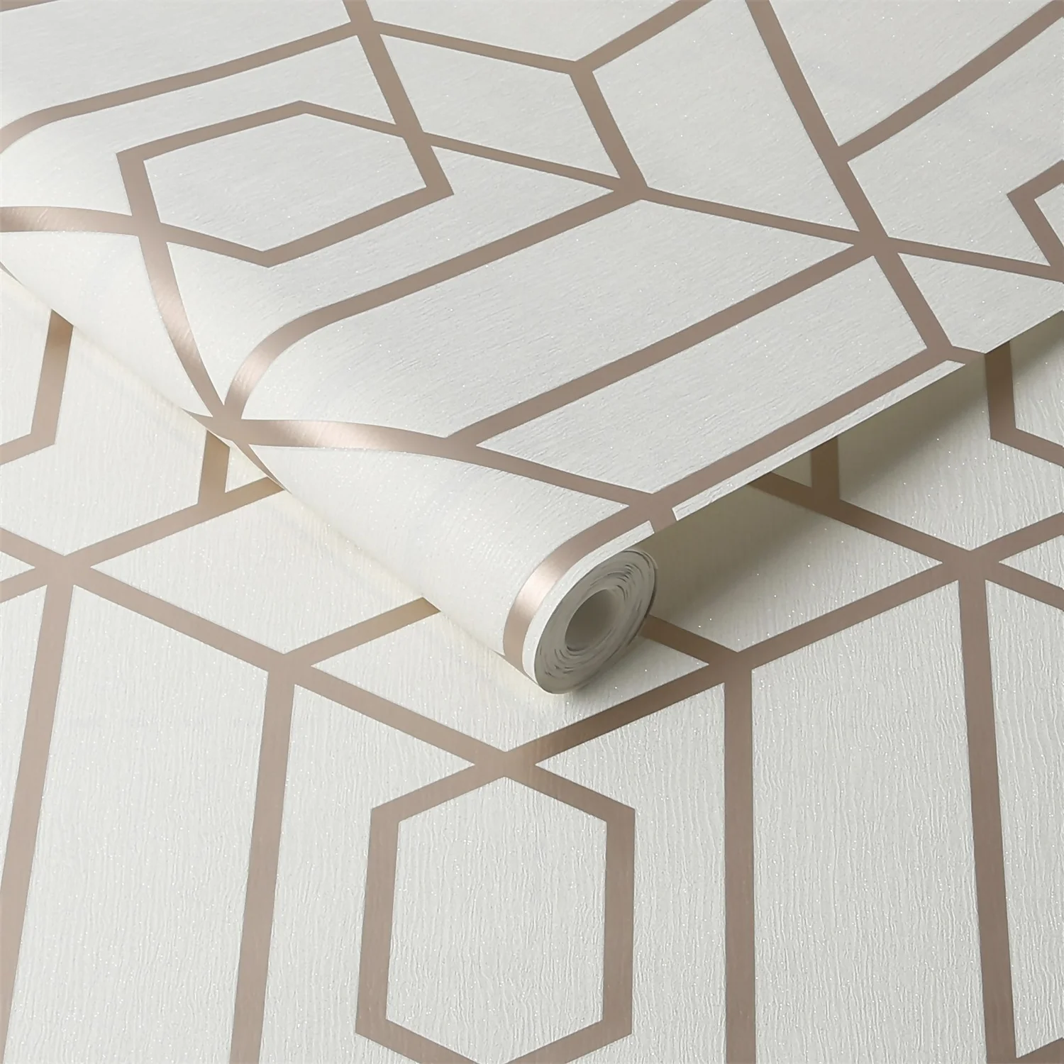 Strike a pose with this classic and sophisticated trellis inspired geometric design highlighted with metallic ink. Coordinates beautifully with the Disco Glitter plain or use on all four walls for a fabulous finish for your walls.
