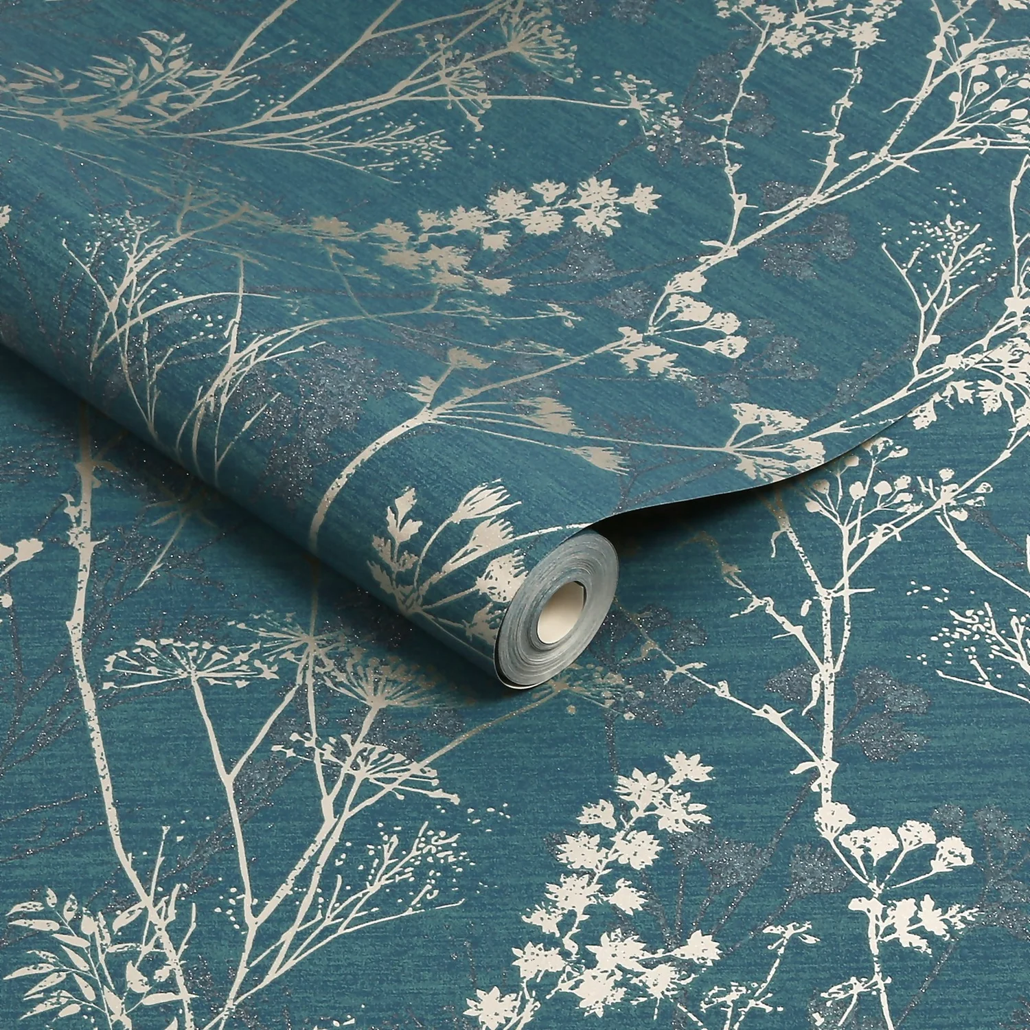 Ensure the quaint furniture in your living space looks even more attractive against the Superfresco Colours room set. This wallpaper is designed in a hedgerow backdrop enhanced in a teal hue print to add a dash a glamour. The sheer gold twig design elevated with a deeper shade of team sprinkled with shimmers of silver glitter further amplify the stylish decor touch of your homes.